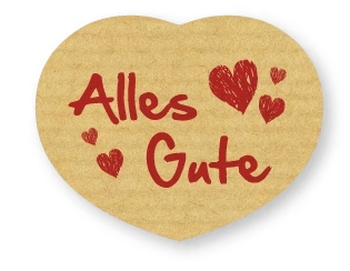 Schmucketikett "Alles Gute" Herzform Natur 42x33mm