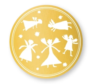 Schmucketikett aus Papier, selbstklebend, 40x40 mm Rund, Motiv Weihnachtsengel gold matt auf Rollen zu je 250 Stück